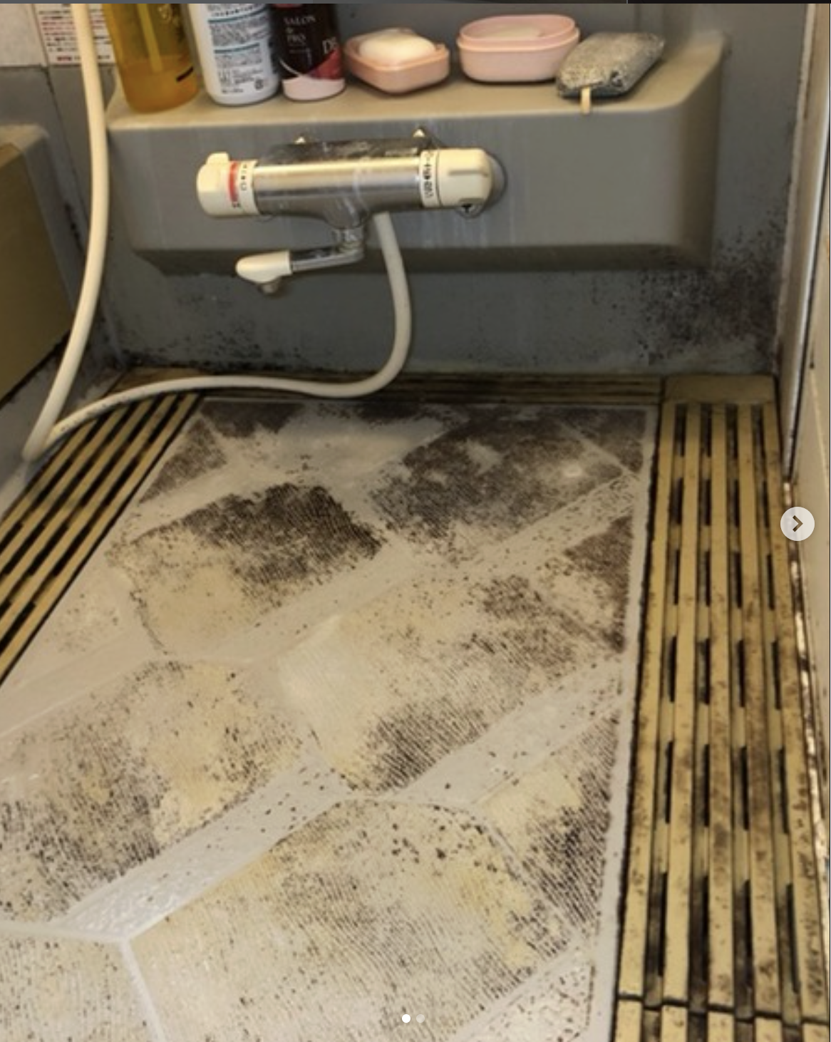 浴室の床を中心に、長年の使用による黒ずみや汚れが目立っていたため、